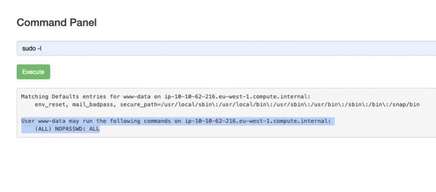 From this output we’re able to see that sudo commands do not require a password. Therefore we can directly access the root directory by doing,
